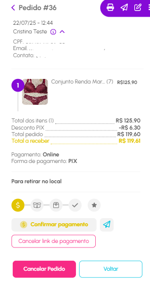 O Vendedor deverá abrir o pedido do cliente (aba Pedidos - abre o pedido específico). O vendedor deve ir até o status do pedido e clicar no ícone de “estrela”