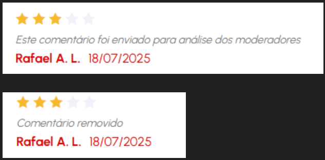 Se, após a revisão, o comentário for bloqueado, ficará claro que ele foi removido.