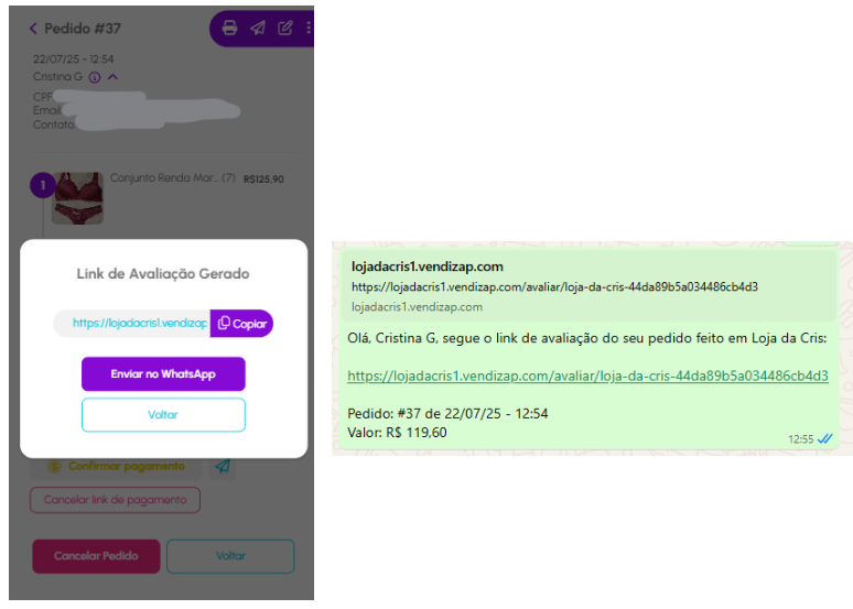 Existem duas formas do cliente receber o link de avaliação que pode depender se o vendedor usa o login de cliente no vendizap, ou não.