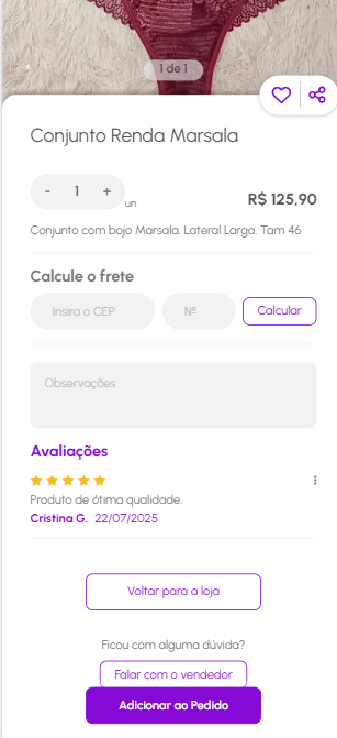 Se o vendedor clicar na imagem do produto dentro da avaliação, o comentário completo será exibido.