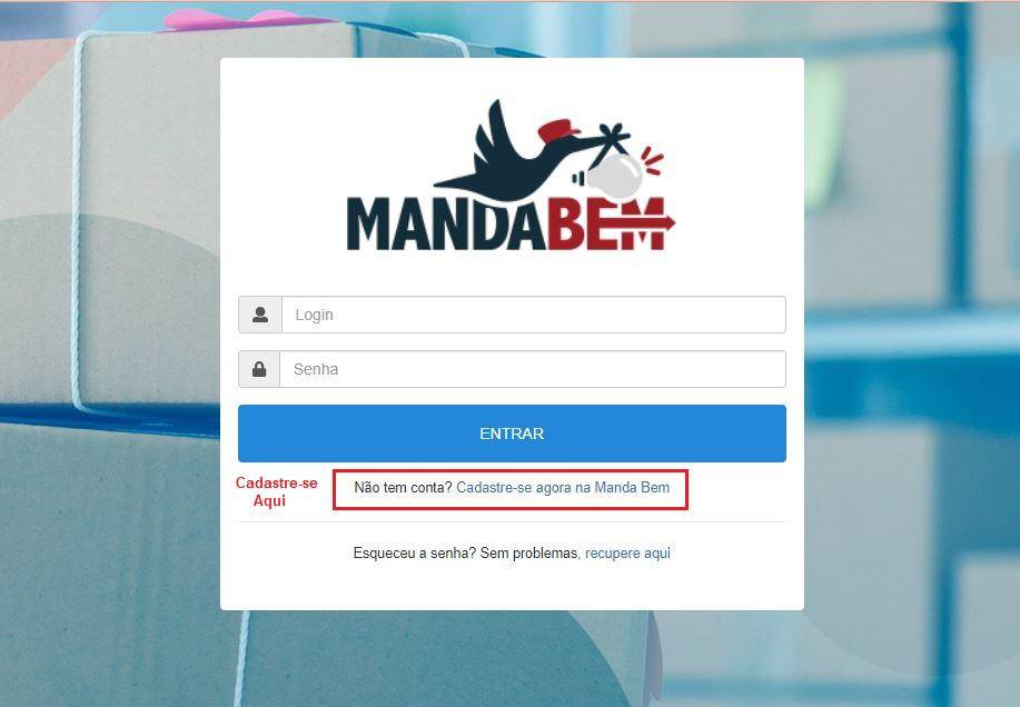 Cadastre-se pelo site https://mandabem.com.br/login.